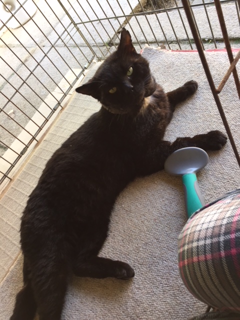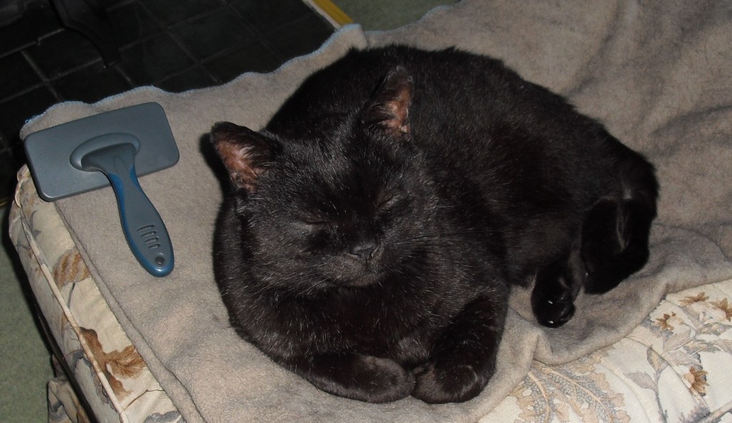 That was a fight! I came back with tufts of white hair stuck to my face and bites and scratches all over. My paw was the worst and my ear was torn. Very painful. My human can’t see my bites because I’m black all over. One more fight and I will have got rid of HIM.