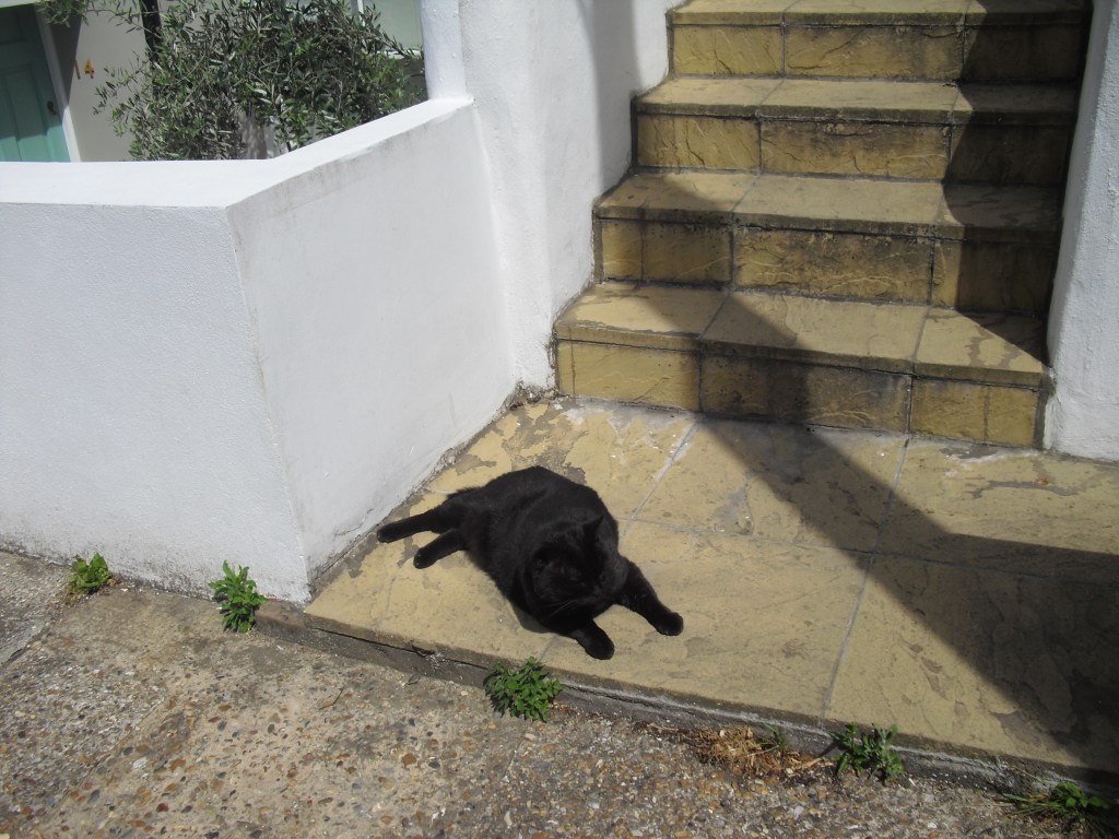 This time the white cat was on my roof and then he was down in the garden cosying up to my human. Outrage! I got down there and let out a scream and attacked immediately. Fur flew. My human tried to get us apart. She went away and I think she was getting something – I think it was the hose pipe. So Big White Cat and I belted off.
